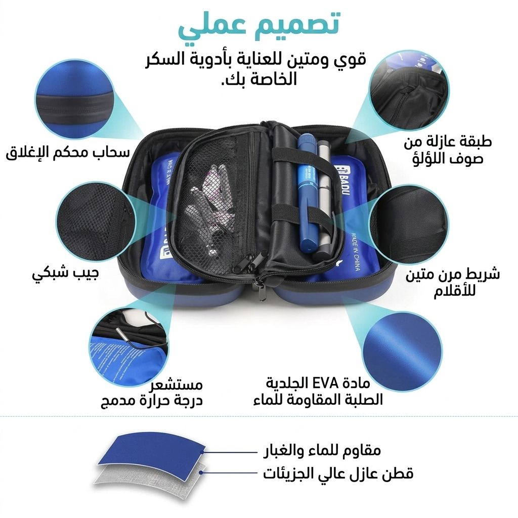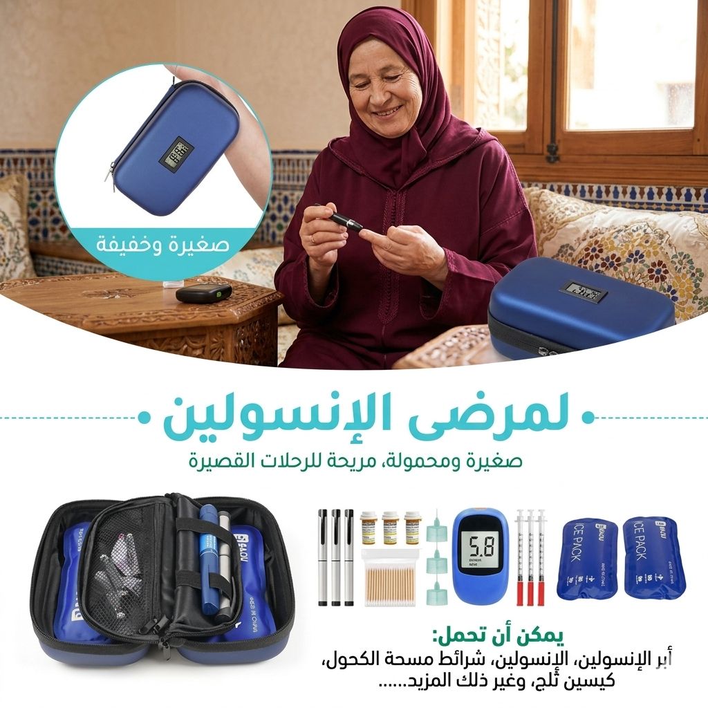 علبة ذكية محمولة تحافظ على درجة حرارة الدواء لضمان سلامته وفعاليته طوال اليوم، مزودة بنظام تحكم حراري يحميه من تقلبات الحرارة، بتصميم خفيف وعملي مناسب للاستخدام في المنزل والعمل وأثناء التنقل، مع تنظيم سهل وآمن للتخزين. الحل المثالي للاطمئنان على أدويتك في أي وقت.